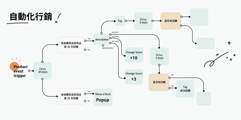 如果你有很多例行重複性的作業,就可以考慮使用自動化的軟體來輔助,省去人力、時間及成本,自動化行銷系統像是電子報行銷依據收件者對信件內容不同的開信反應做出下一步客製化的再行銷,這就是一種非常棒的自動化行銷範例。